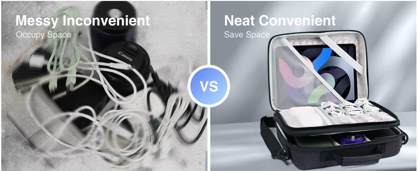 - HOME STORGE & TRAVEL FRIENDLY: Lightweight and compact design, great electronics organizer case for home storage and portability. This carrying case is convenient for work, school, travel, etc.