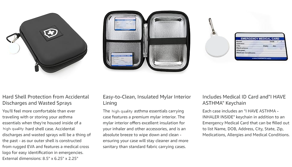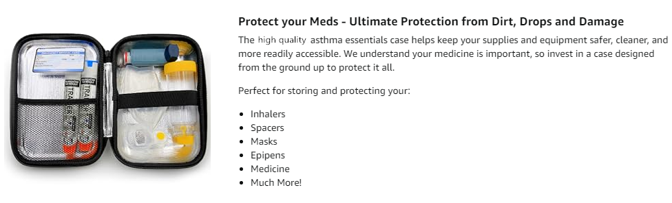 ★ The compact 8.5" x 6.25" x 2.25 can fit in any bag but allows a variety of accessories to be carried as well. INCLUDES CASE ONLY , DOES NOT INCLUDE INHALER