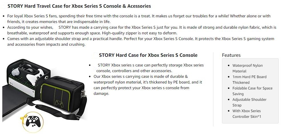 - 【Hardcase & High-quality material】:Waterproof, Dustproof, and Shockproof! The storage pockets are surrounded by anti-shock cotton. This reduces the influence of external bodies on the contents of the packaging to protect against scratches and bumps. Besides, waterproof nylon materials can protect your game console and accessories from water and dust. ONLY for Xbox Series S console, NOT compatible with other versions.