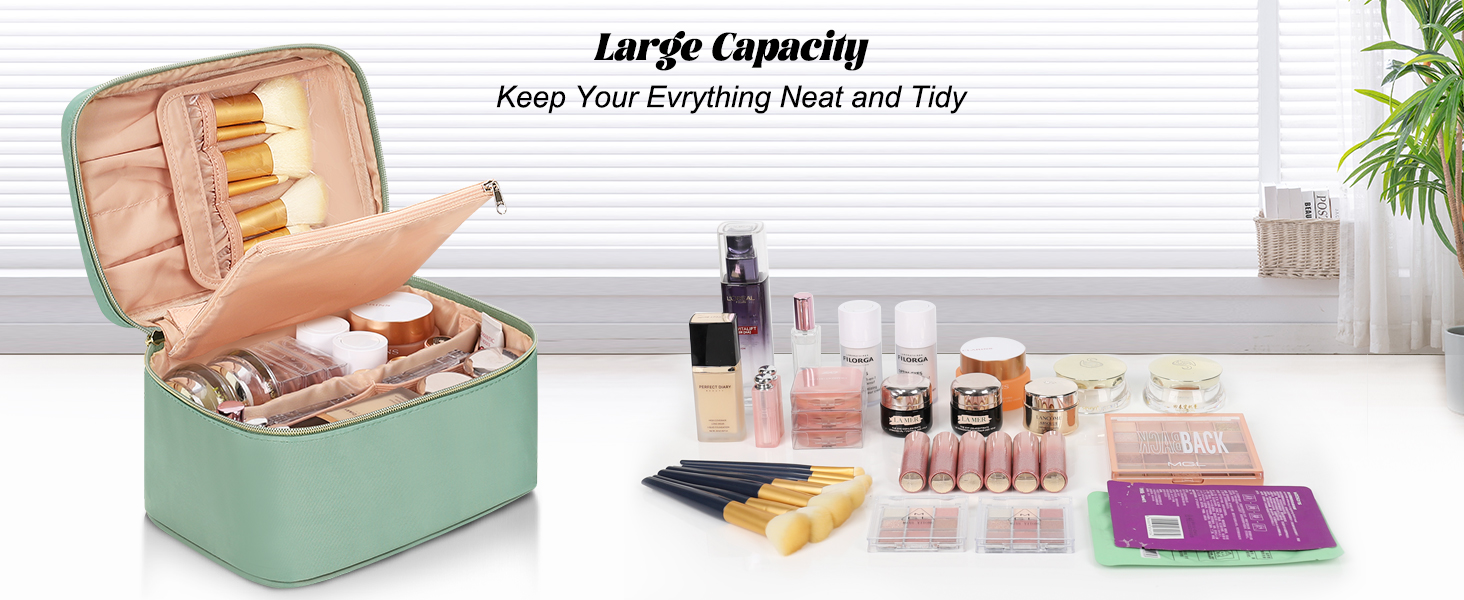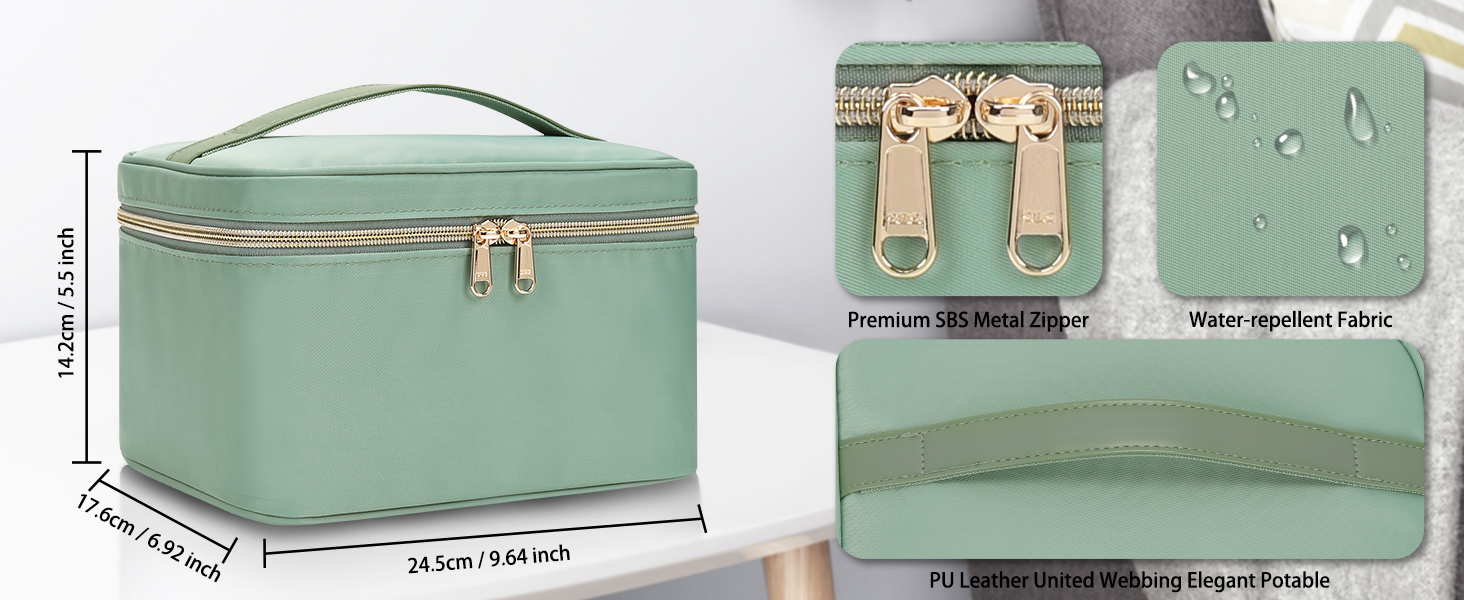 4. Easy to Clean: This makeup bag is made with water-resistant and durable fabric,it's easy to wipe spills off the cosmetic bag & keeps dust away to ensure the cosmetic bags remain in tidiness condition.