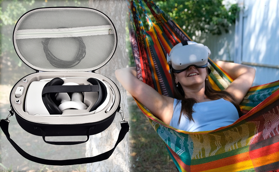 ★ Tailor-made for oculus quest 2 case: VR headset case for Meta/ for Oculus Quest 2 Advanced All-In-One Virtual Reality Headset. Not only can it perfectly for oculus quest 2 headset, but also for oculus 2 accessories including for oculus quest 2 controller, for oculus quest 2 battery pack, USB cable, etc. There's also a zipper mesh pocket for your other stuff. (For oculus quest 2 carrying case not include device)