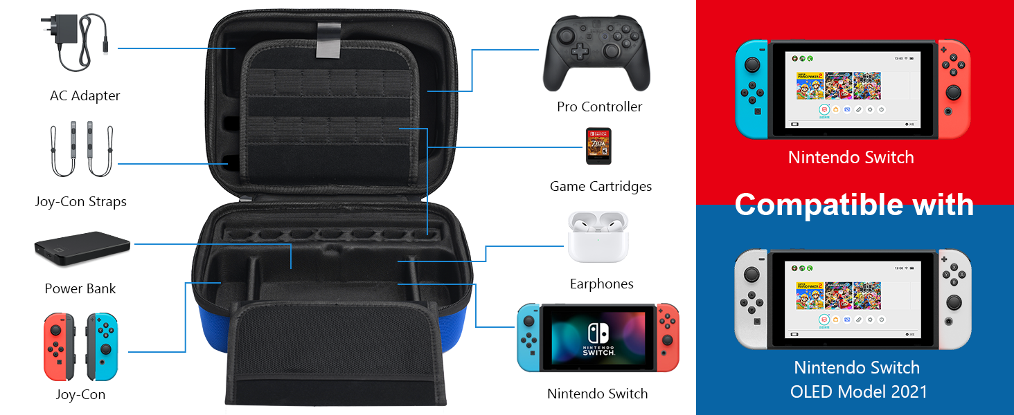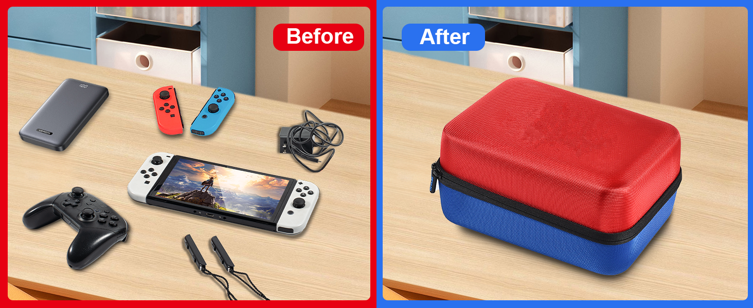 ★旅行と持ち運び:Switchハードケースは、Nintendo Switch OLEDコンソールまたはNintendo Switchコンソールを保護します。外出時や旅行時にSwitchアクセサリーをすべて持ち運ぶのに最適です。