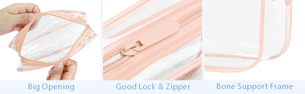 ★Мықты найзағай және үлкенірек үстіңгі ашылуы- Мөлдір дәретхана сөмкелерінде біркелкі сырғып кететін берік найзағай бар; Сыдырманы мықтап жабуға болады, ол TSA 3-1-1 қайта жабылатын сөмке талаптарын қатаң сақтайды; Үстіңгі үлкен саңылау элементтерге бірнеше секундта қол жеткізуге мүмкіндік береді