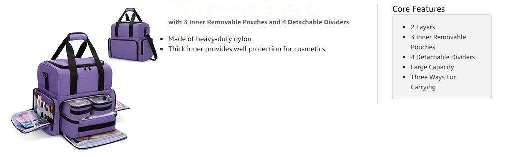 프리미엄 품질 – 튼튼한 나일론 소재로 제작되었습니다. 두꺼운 안감이 메이크업/헤어/타투 용품을 안전하게 보호합니다.