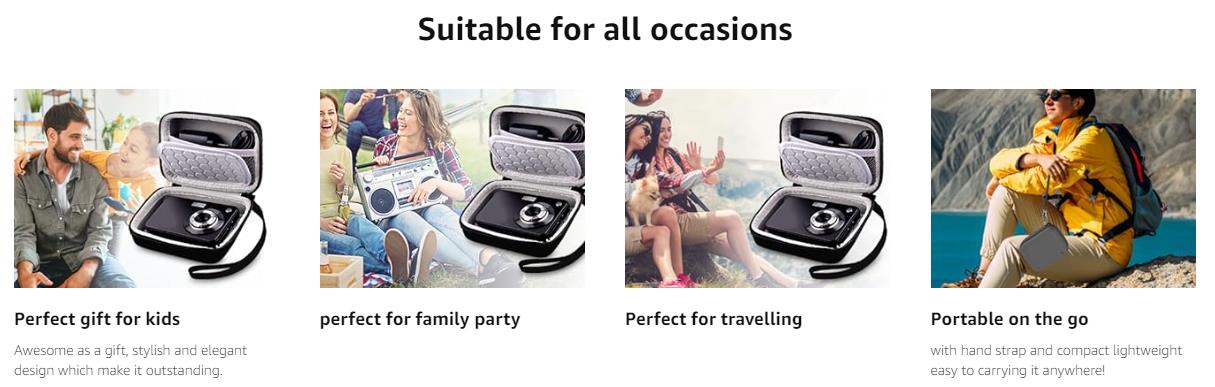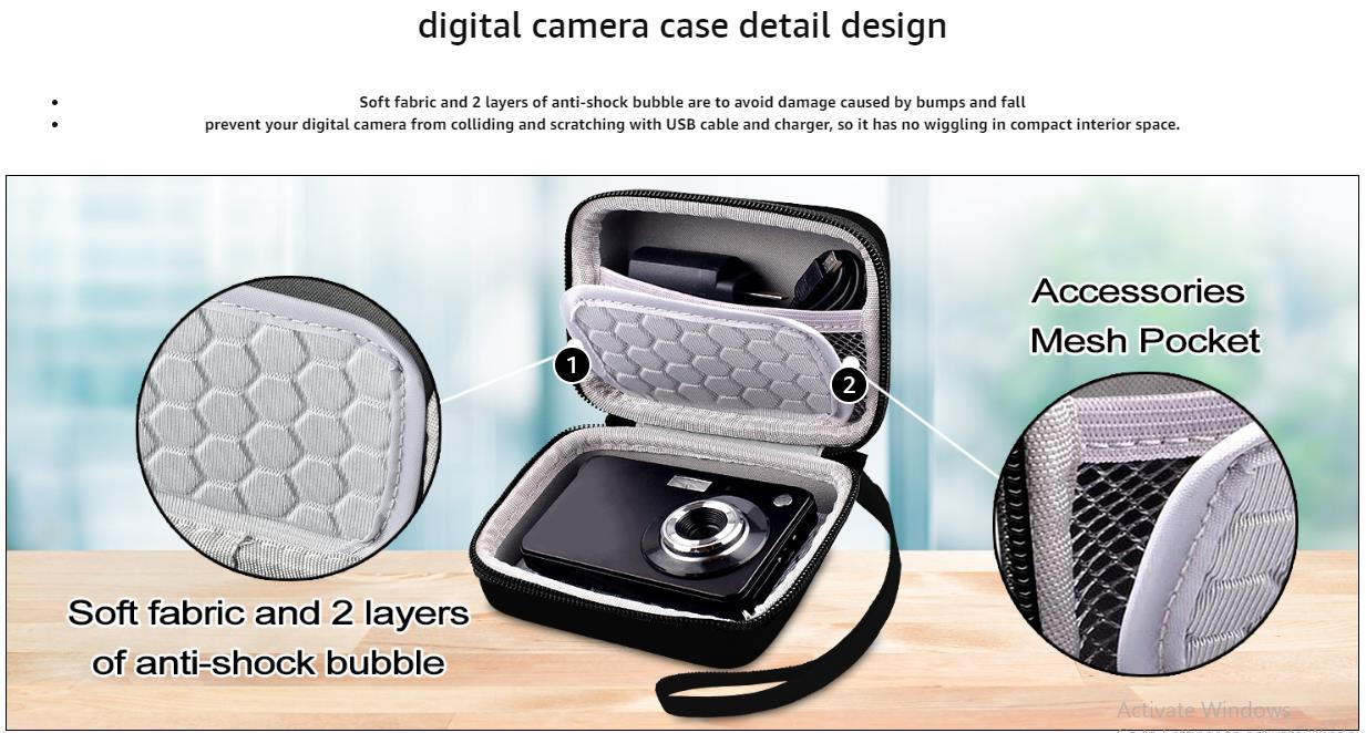 ◆간단하고 포괄적인 보관 환경: 4.9인치*3.5인치*2.2인치의 제한 크기의 학생용 디지털 카메라, 충전기 및 USB 케이블을 수용하여 다양한 종류의 요구를 충족할 수 있습니다(케이스만 해당)