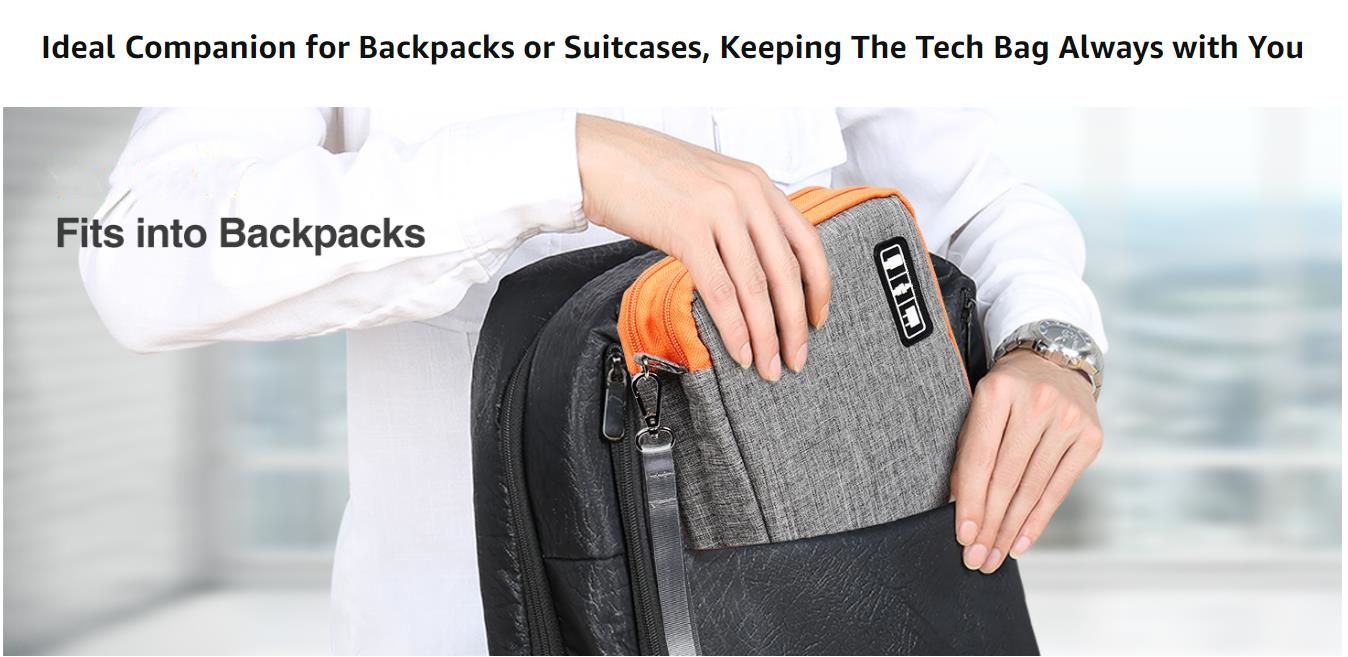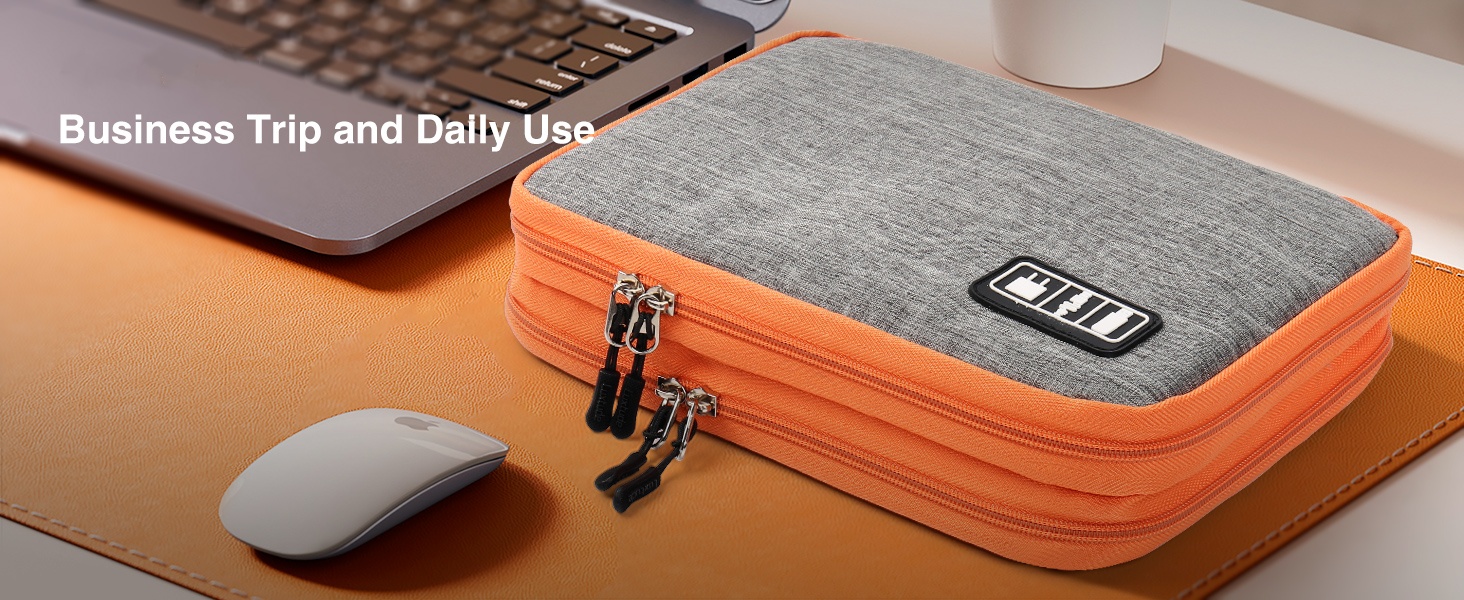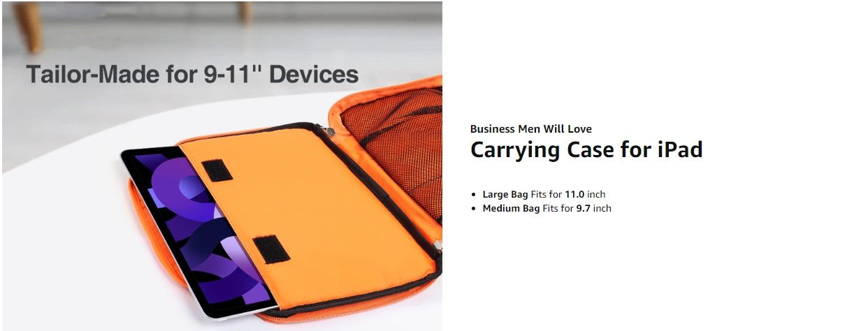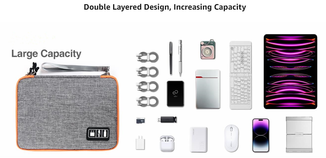 - LARGE CAPACITY: The electronics bag has 2 layers Nylon interior compartment with enough space to storage your cables, iPad(up to 11"), kindle, power bank, USB drive, cellphone, wall charger, mouse, and other accessories, keep all your electronics accessories in one place.