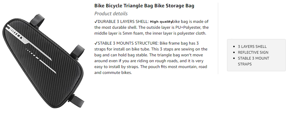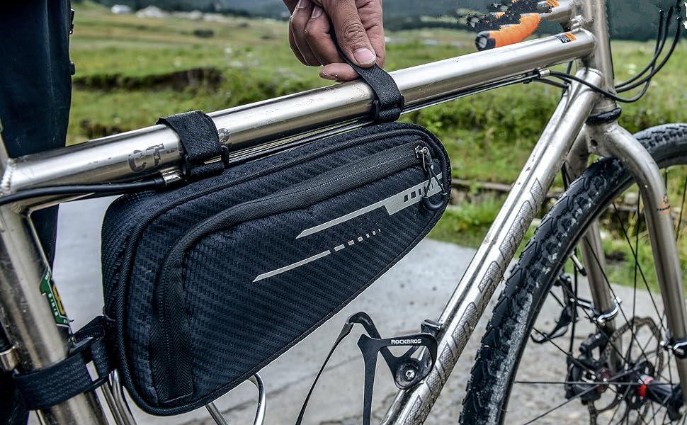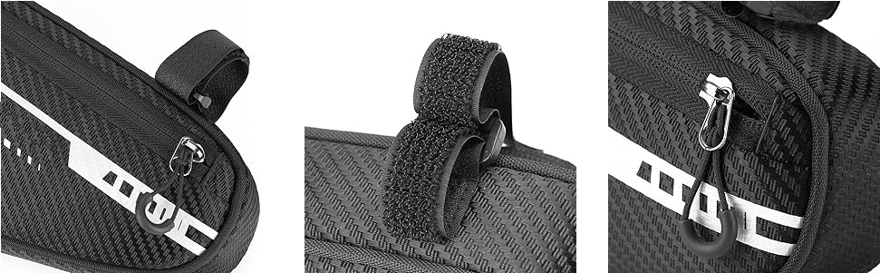 ★STABILI 3 LAIKIKLIŲ STRUKTŪRA:Dviračio rėmo krepšys turi 3 dirželius, skirtus tvirtinimui prie dviračio vamzdžio. Šie 3 laikikliai yra prisiūti prie krepšio ir stabilizuoja jį. Trikampio formos krepšys nejudės net važiuojant nelygiu keliu, be to, jį labai lengva pritvirtinti dirželiais. Krepšys tinka daugumai kalnų, plento ir kasdienių dviračių.