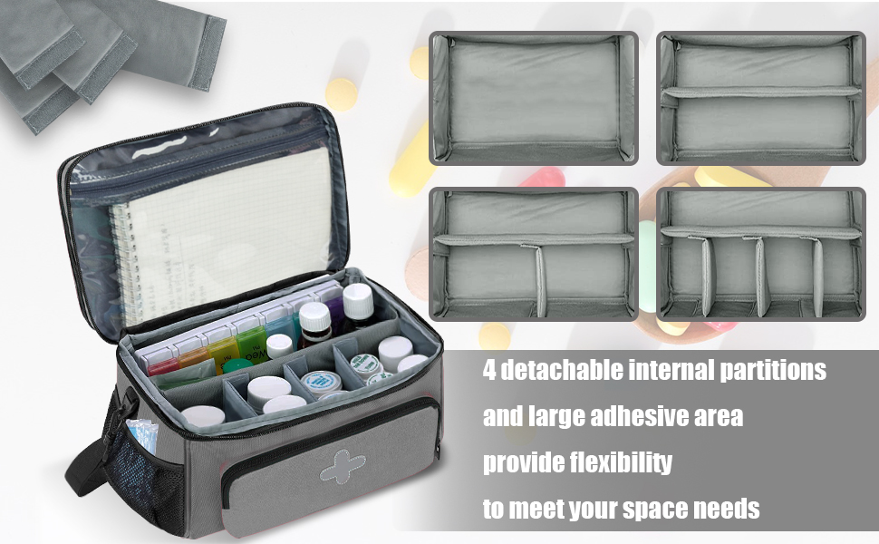 【Space customization】:the lower compartment has 4 detachable partitions, you can change the internal space composition according to your needs to better organize your pills and medicine bottles, this unique design makes your medicine better hold and not topple