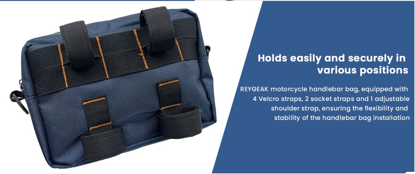 - ACCESSORIES CONTENT: Motorcycle handlebar bag, equipped with 4 Velcro straps, 2 socket straps and 1 adjustable shoulder strap to ensure it can be easily and securely fixed in various positions.