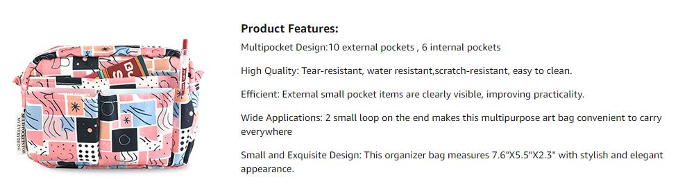 - Storage Spaces: 10 external pocket for easy access; 6 internal pockets of various sizes can fit for notebooks, stationeries, make-up, art tools etc, can travel with you anywhere with the convenient carrier.
