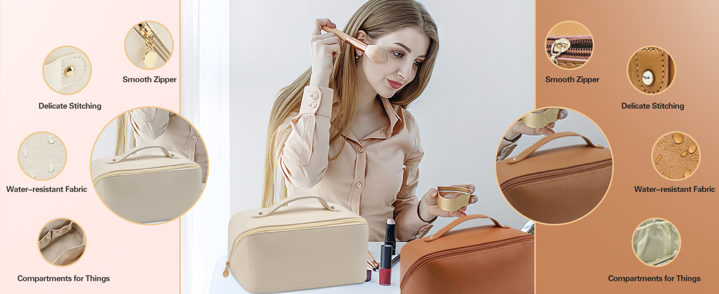 - 【Bærbar kosmetikkveske】Den lille kosmetikkvesken med bærehåndtakdesign, selv om du går ut, kan du sminke deg når som helst, stor åpningsdesign, du kan finne kosmetikken du ønsker når du åpner den.