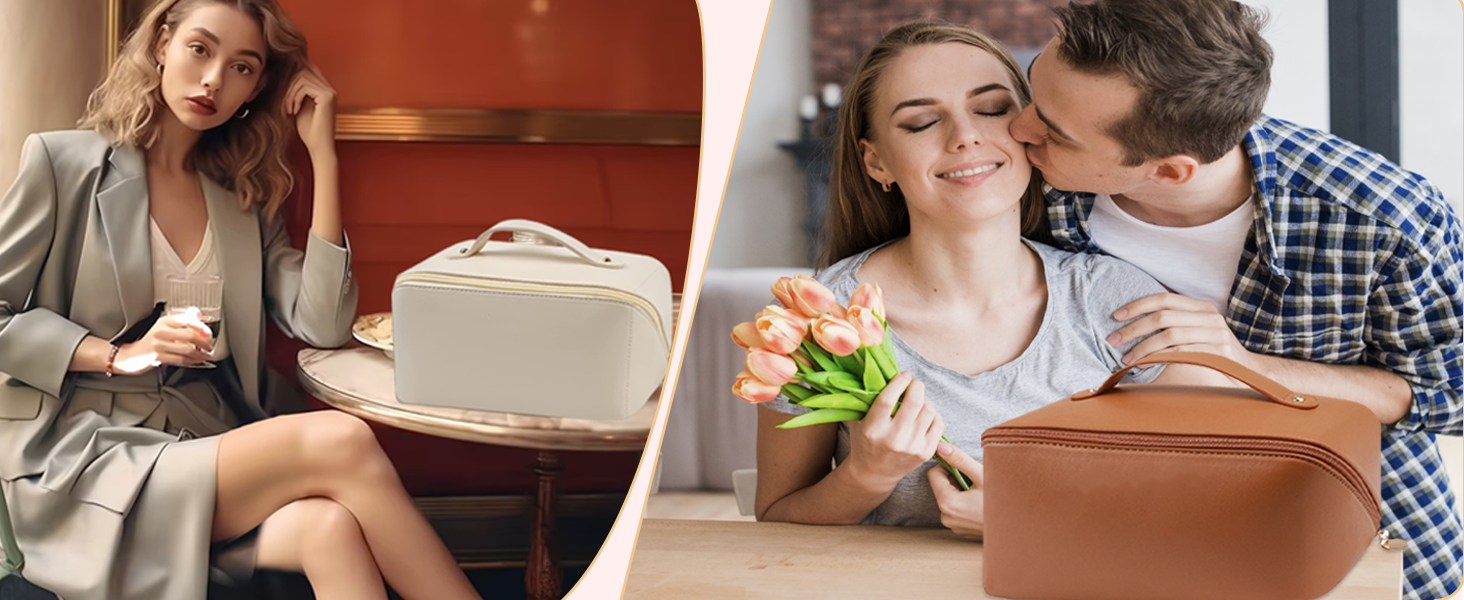 - 【Kosmetikkveske】Tilpasset glidelåsdesign, laget av vanntett PU-skinnmateriale, slitesterk, luktfri kosmetikkveske, kan brukes med trygghet