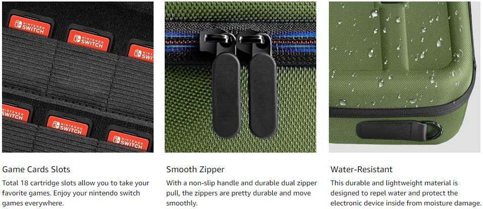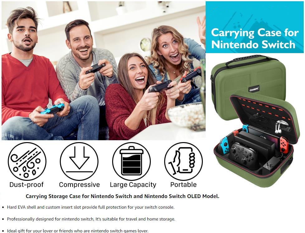��� FULL PROTECTION - This hard shell carrying case provides ultimate protection for your Nintendo Switch console against drops, scratches, and dust. The interior liner is made of soft material and also features separate compartments for accessories, preventing them from scratching each other. With this case, your switch console and accessories will be safe and secure wherever you go.