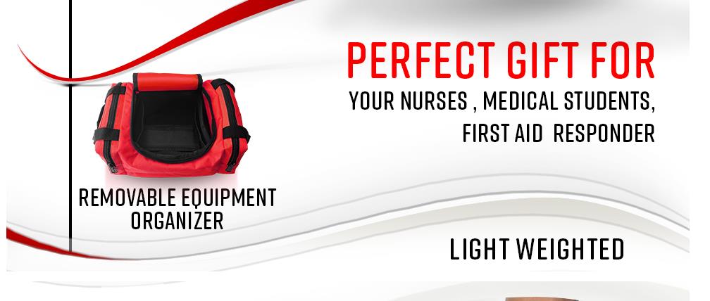 - REMOVABLE EQUIPMENT ORGANIZER: Easily organize your supplies in the large main zippered compartment with the washable foam divider, or remove it to store more significant items that require more open space. Our EMT trauma bag is customizable to your daily needs as a medical professional.