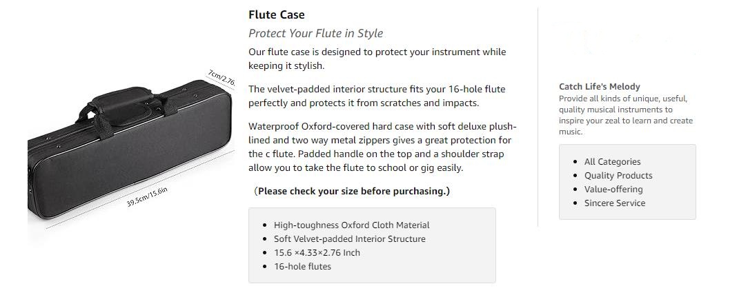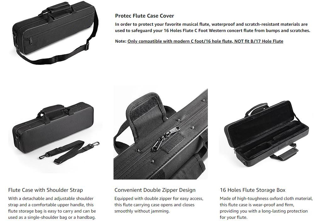 - ✅【A Large Pockets for Large Capacity】The lightweight 16 Holes flute c case gig bag owns an exterior zippered storage pocket, provides plenty of room for flute stand, music book, etc. You can take your beloved flute and organize the accessories methodically when gigging and traveling
