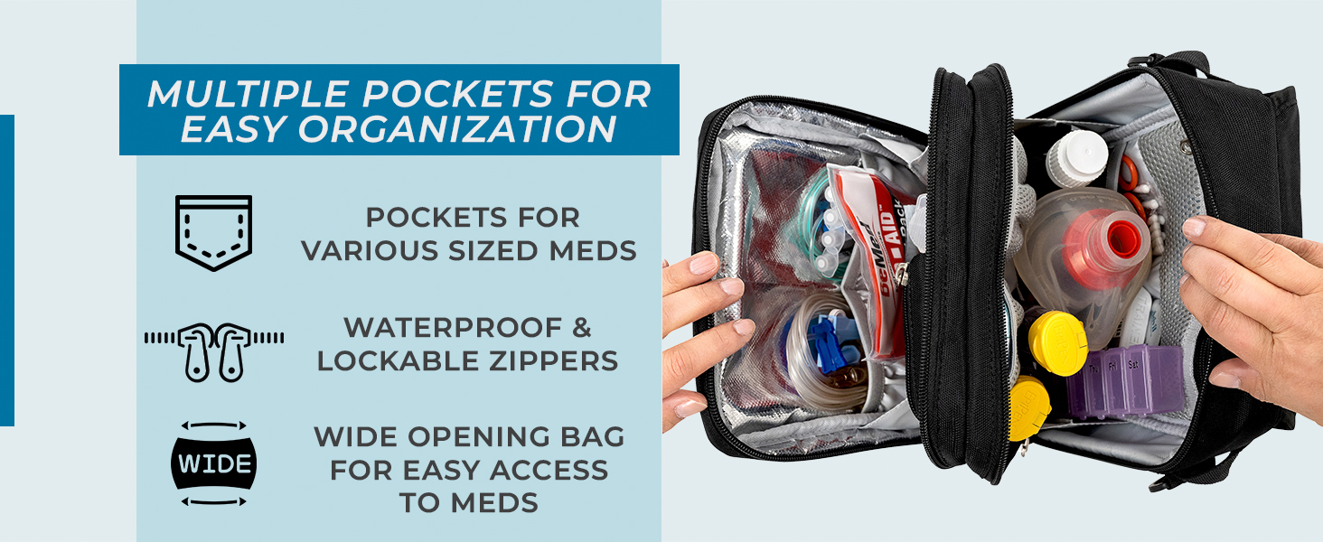 Optimal Organization: Comes with two compartments and multiple mesh pockets for efficient access to medications and supplies.
