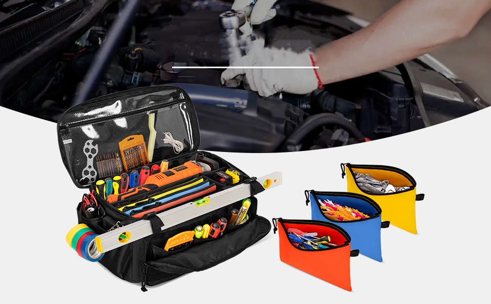 - MULTIFUNCTIONAL - This tool organizer bag can meet your most daily demand, keeps hand tools and accessories organized. Multi-purpose work bag is an ideal gift for electricians, mechanics, maintenance workers and gardeners.