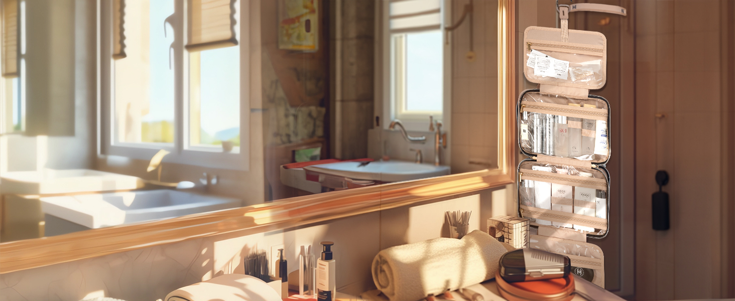 - Convenient Design - Stow-away 360 degree swivel non-slip metal hook for versatile hanging options; Two-way zipper closure for quick access; Carry handle doubles as its hanging strap.