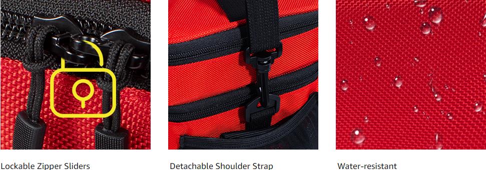 Functional Pockets: The bag has a zipper front pocket and two side pockets to provide extra space for storing medicine and other supplies.