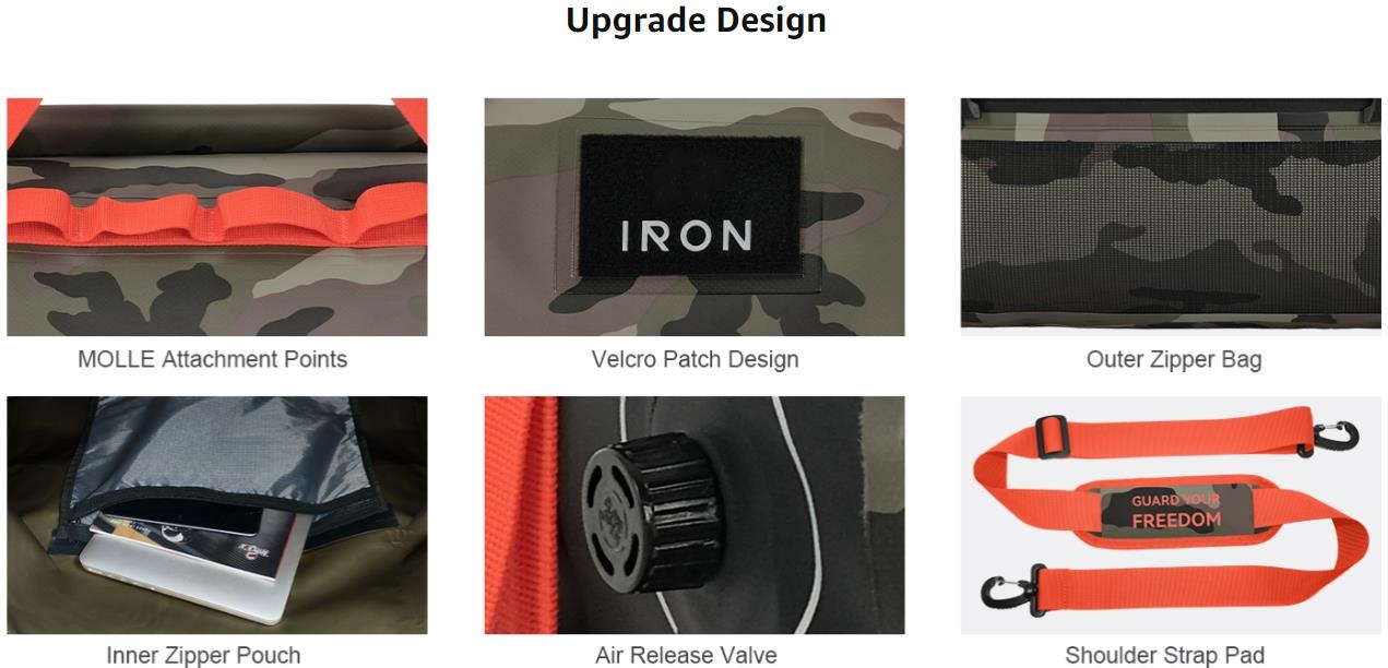 - 【Upgrade Design】: 1.Molle attachment points design for tie-down more belongs. 2.Velcro patch provides your DIY label possible. 3.One large external mesh pocket with zipper for packing wet clothes. 4.Inner pouch for placing digital products like 15-17 inch laptop. 5.Air release valve frees up more space. 6.Strap shoulder pads make bag easier to carry.