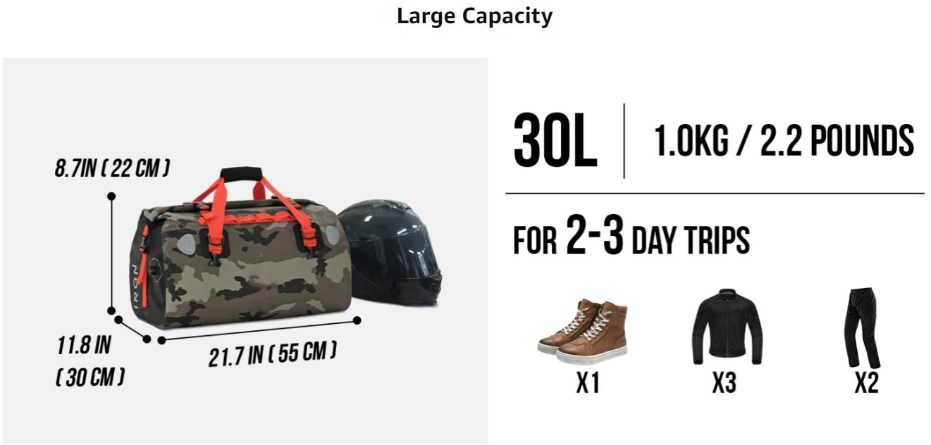 - 【Multi Functional Duffel】: The duffle bag can be used as handbags,messenger bags,backpacks,motorcycles & bicycles & cars luggage bags. Ideal weekender bag for all your motorcycling skiing travel, hiking, camping, sailing, fishing, sporting, boating and travel adventures.